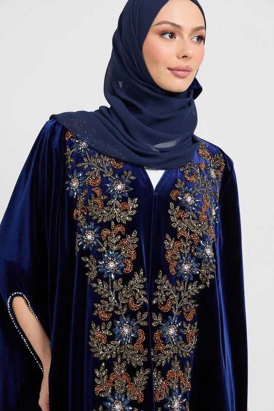Luxury Sapphire Bloom Velvet Embellished Cape